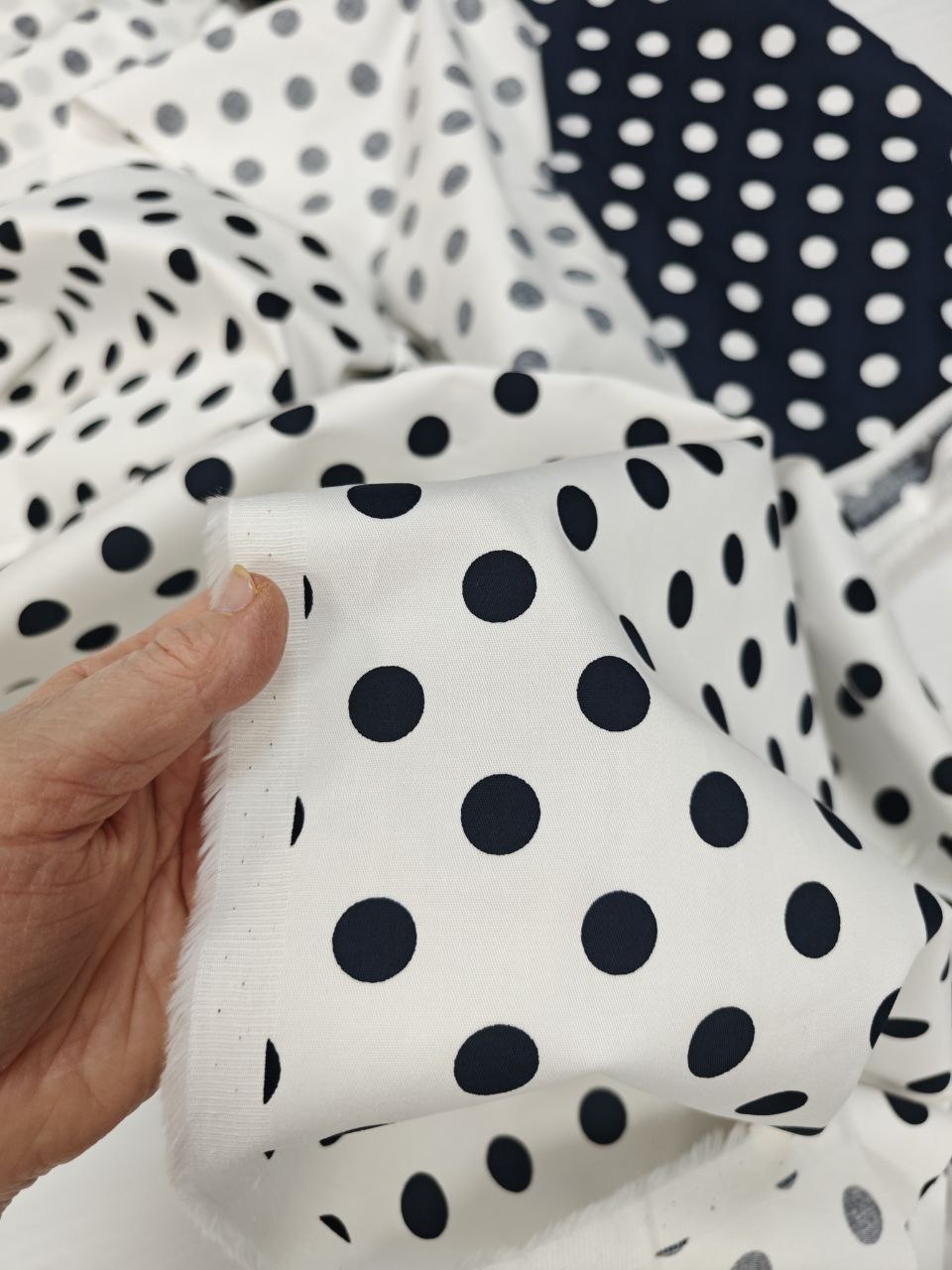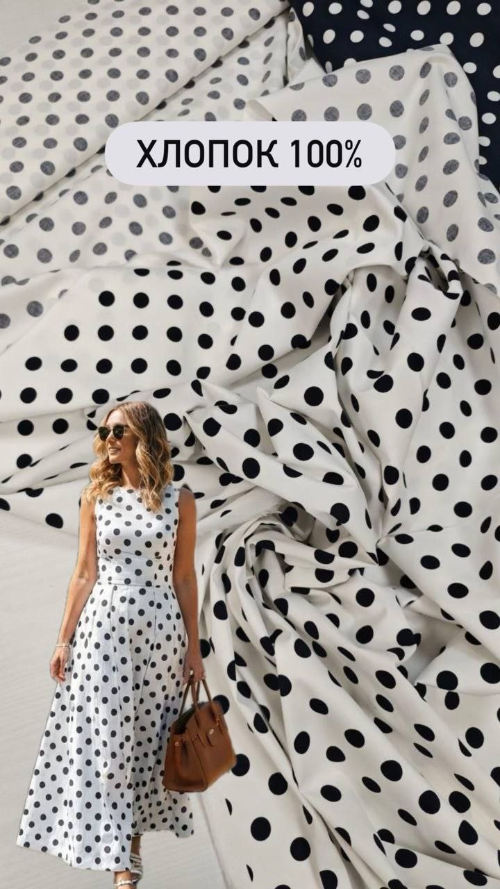 Белый хлопок в черный горошек