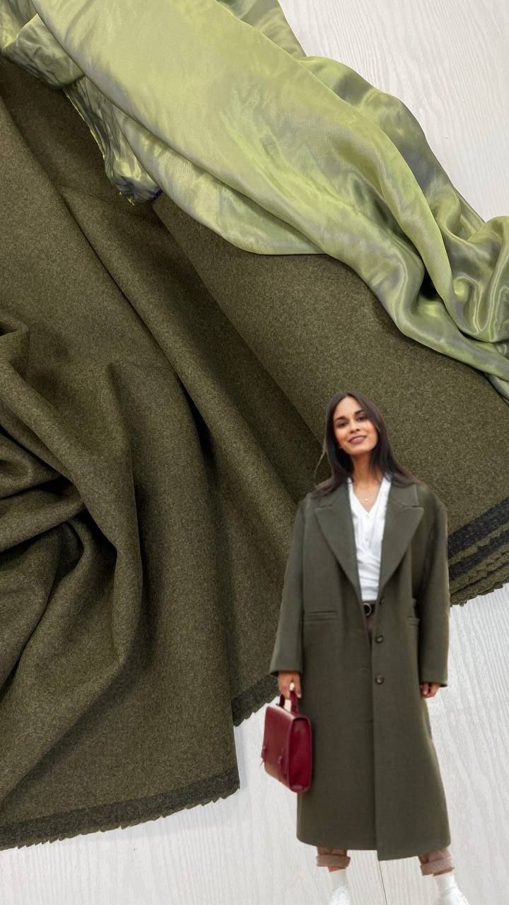 Двухсторонная пальтовая шерсть с кашемиром цвета хаки